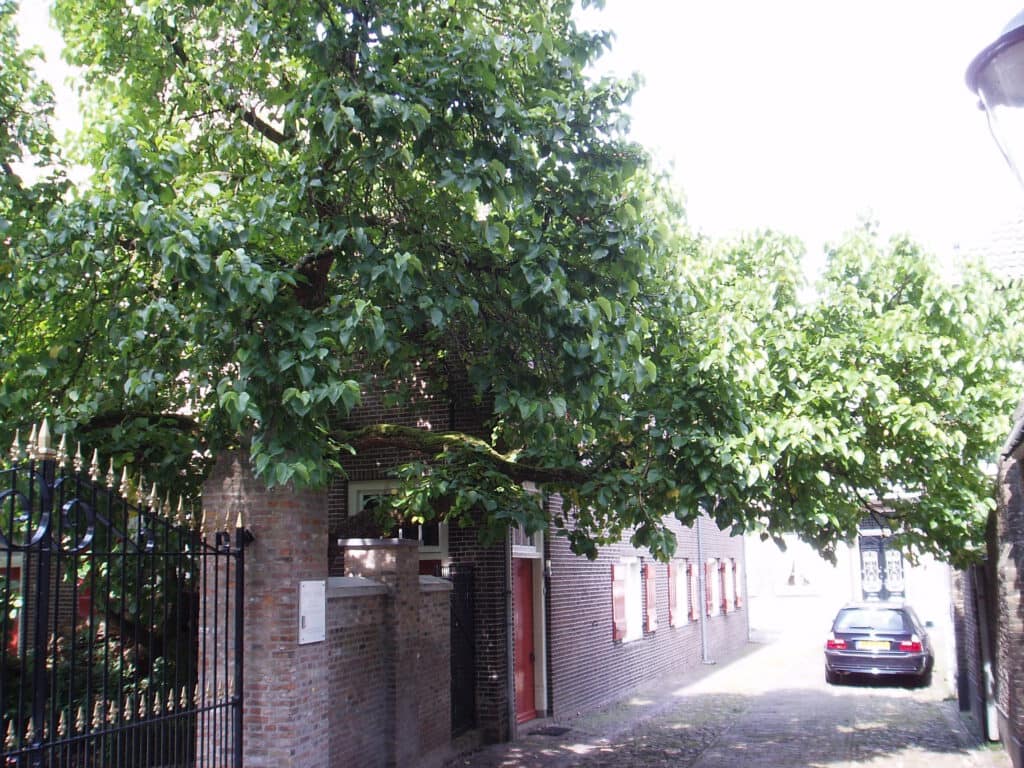 Het herenhuis van de vroegere familie Verhoeven op de hoek van de Zustersteeg staat een heel oude beuk.