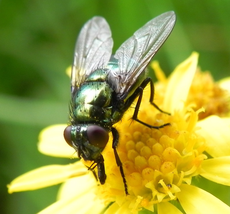 Natuurgebieden in de gemeente Heusden Natuurgebieden in de gemeente Heusden » Maas en Uiterwaarden Groene vleesvlieg op Jakobskruiskruid Afbeelding 18 van 37 - PHAENICIA SERICATA, JACOBAEA VULGARIS - Maas en Uiterwaarden; 15-8-2011 Fotograaf Annie van Bokhoven