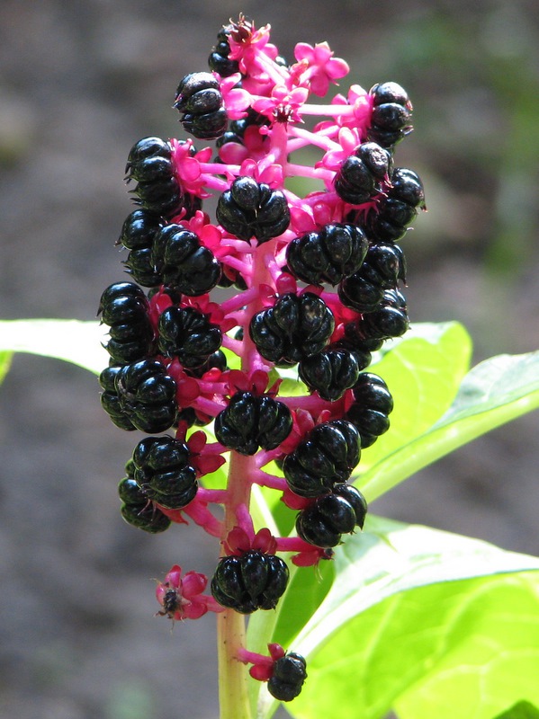 Natuurgebieden in de gemeente Heusden Natuurgebieden in de gemeente Heusden » Steenenburg Westerse karmozijnbes Afbeelding 24 van 28 - WESTERSE KARMOZIJNBES / PHYTOLACCA AMERICANA - Vroeger gebruikte men de rode kleurstof van deze plant om stoffen te verven - "scharlaken"; Steenenburg; 13-9-2005 Fotograaf Annie van Bokhoven