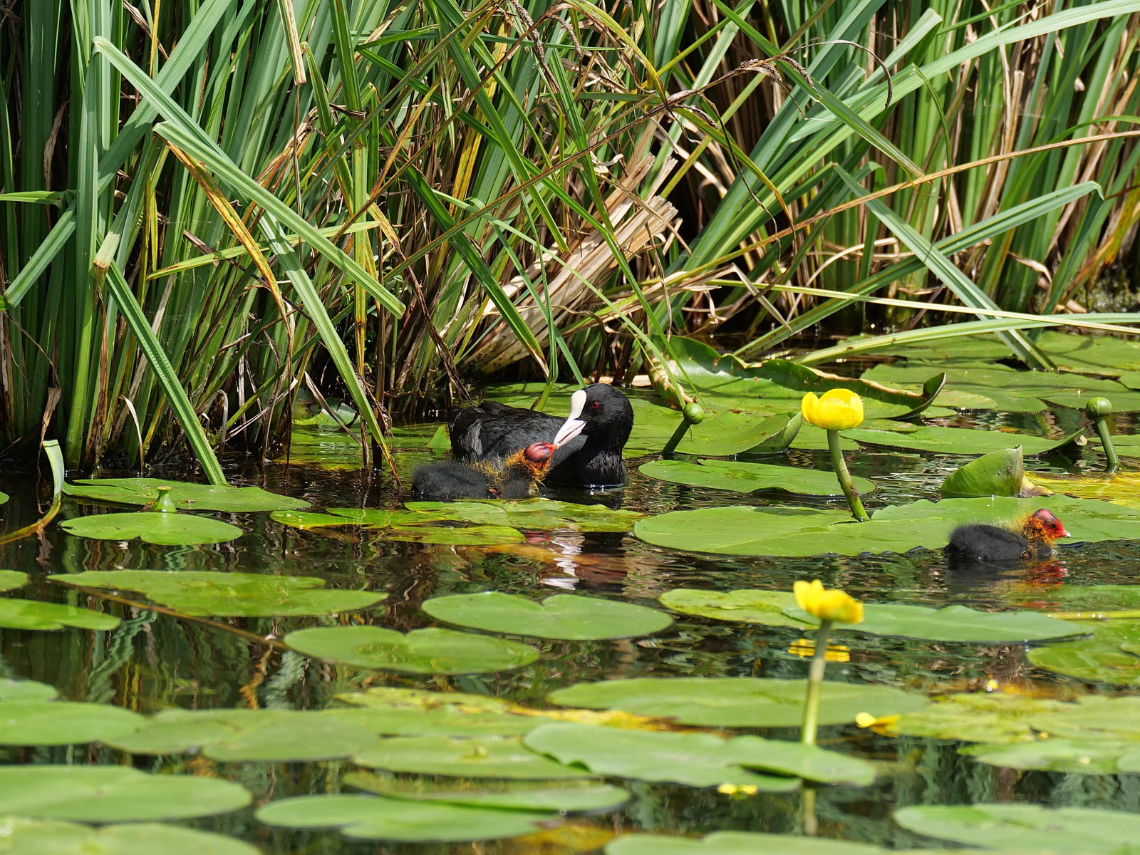 Natuurgebieden in de gemeente Heusden Natuurgebieden in de gemeente Heusden » Water en wallen vesting Heusden Meerkoet met jongen Afbeelding 5 van 23 - MEERKOET / FULICA ATRA - Water en wallen vesting Heusden; 20-6-2024 Fotograaf Martin Vissers
